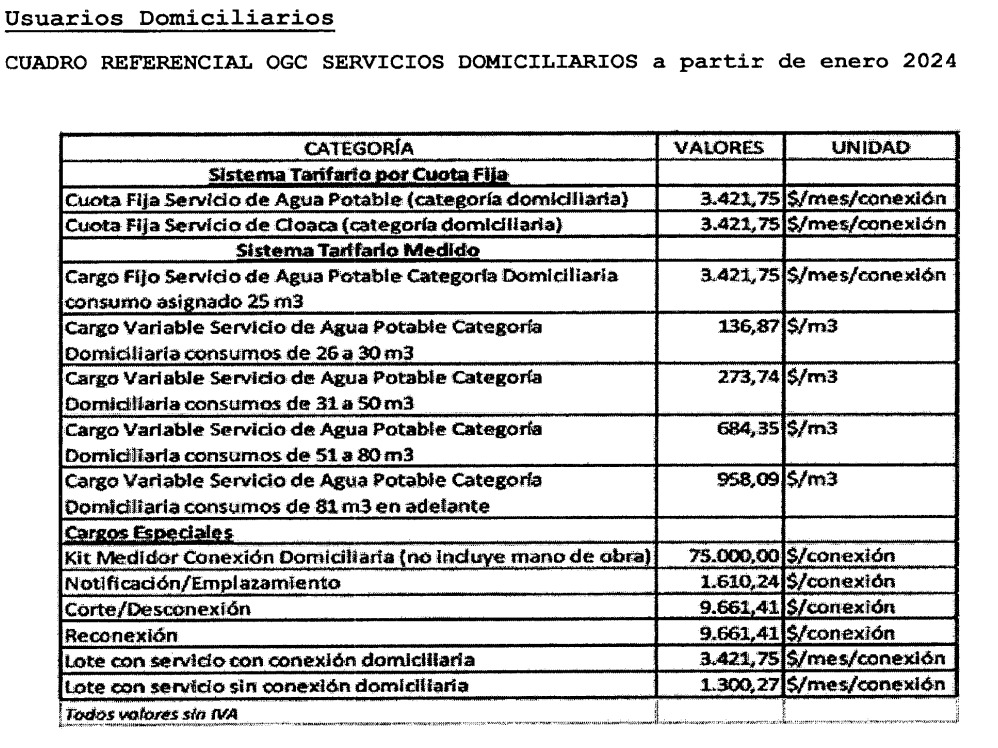 TARIFAS VIGENTES